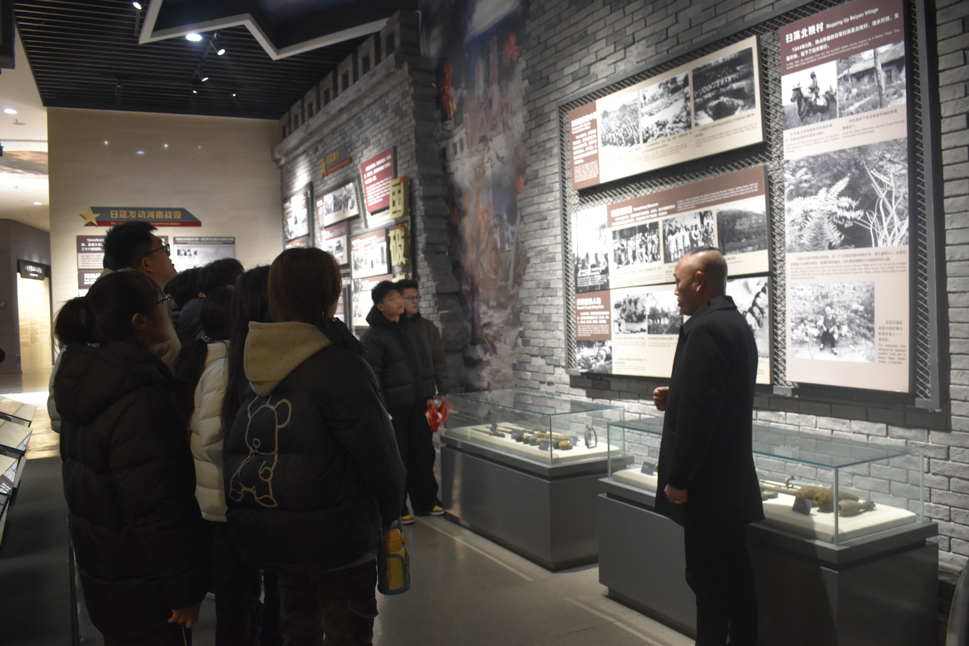 纪念馆以八路军豫西抗日斗争历史为主题,共分豫西沦陷、挺进豫西、抗击日寇、红色曹沟、走向胜利、风云人物、情系豫西和铭记历史等八个展区。同学们通过图片、雕塑、现场工作人员讲解等形式,了解到在抗日战争期间豫西人民经历的浴血奋战,感受到这些为保家卫国而牺牲的战士不屈的信念和大无畏精神。